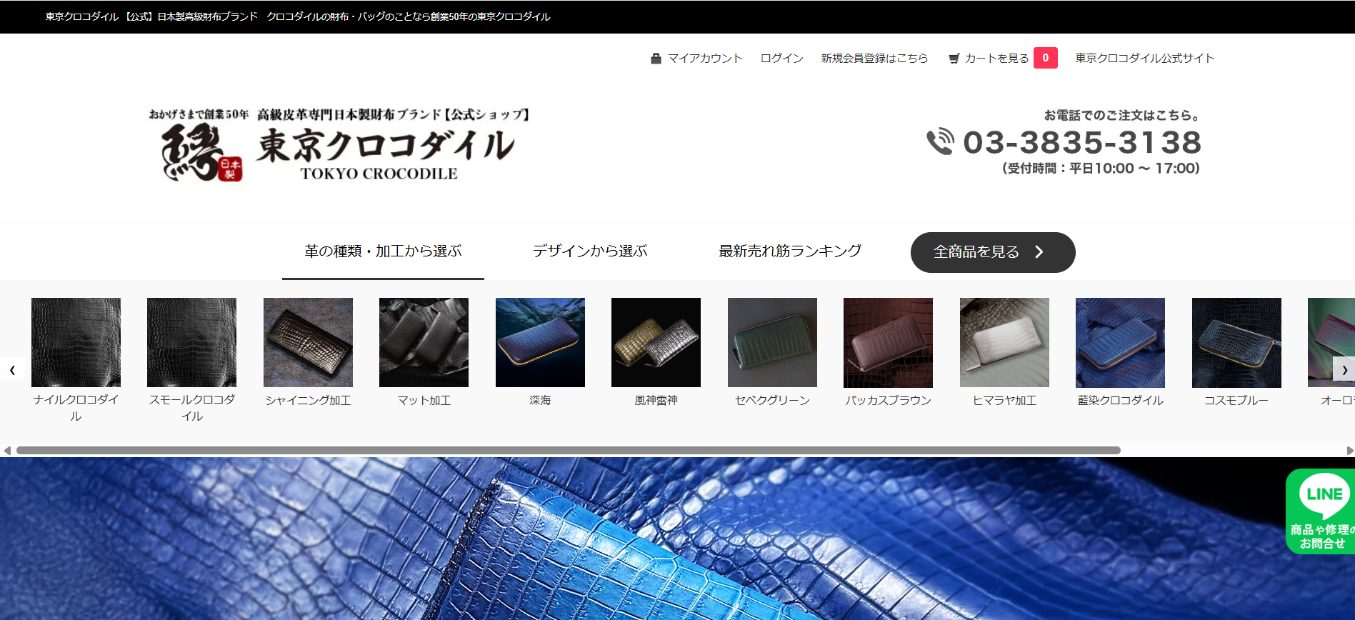 豊富な商品展開: 財布では、ラウンドファスナー長財布、無双仕立ての長財布、折財布、マネークリップなどが主力で、スモールクロコダイルの「藍染」など日本の伝統技術を用いた限定的なカラーモデルも展開し、多様なニーズに応えています。